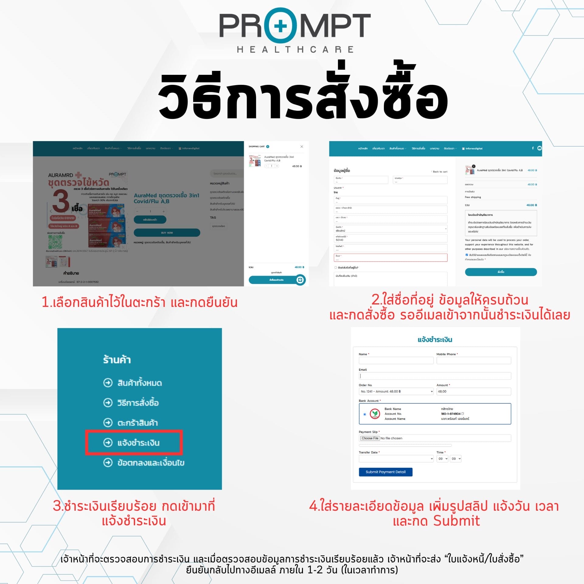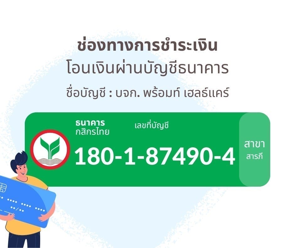 ชื่อบัญชี บจก. พร้อมท์ เฮลธ์แคร์ เลขบัญชี 180-1-87490-4